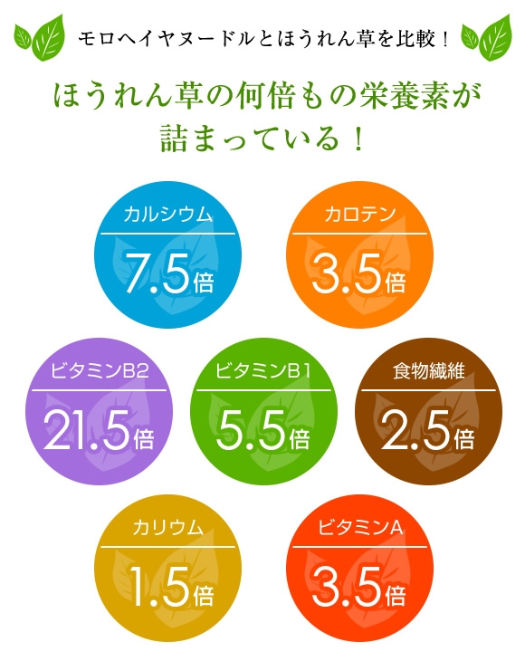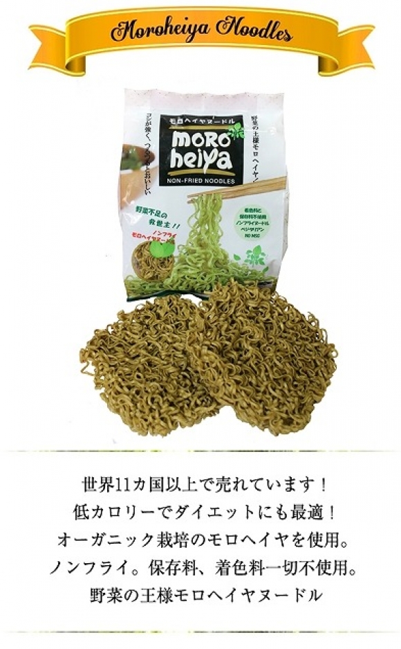 | 小麦粉、でんぷん、モロヘイヤ粉末(オーガニックUSDA・IFOAM・有機JAS取得)、食塩、かんすい |