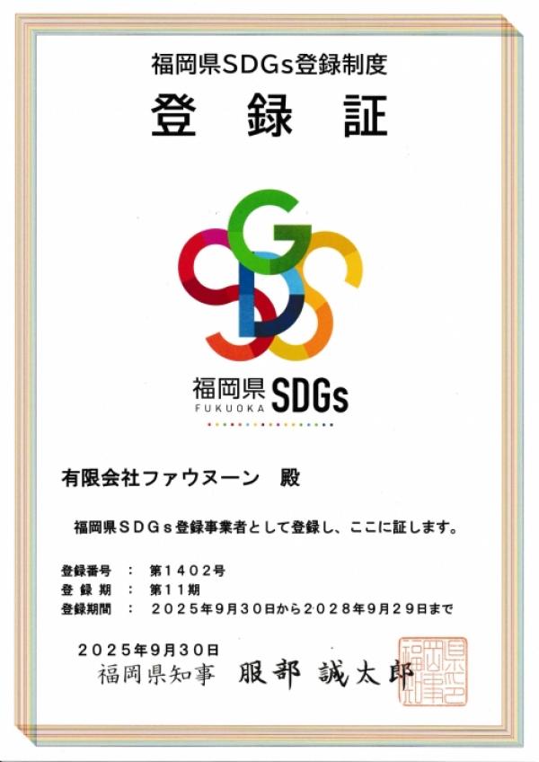 ​この度、弊社有限会社ファウヌーンは、福岡県SDGs登録事業者として正式に登録されました!🎉